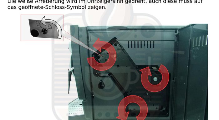 Die Servicetür wieder verriegeln. Bitte nicht vergessen sonst funktioniert der Kaffeevollautomat nicht.